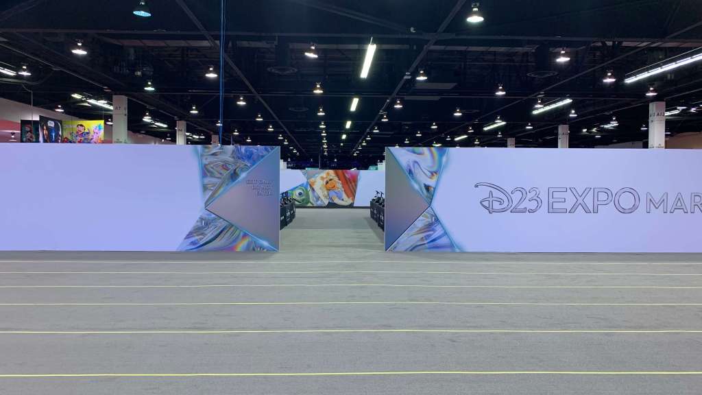 - Main entrance signage featuring “D23 EXPO MARKETPLACE” branding