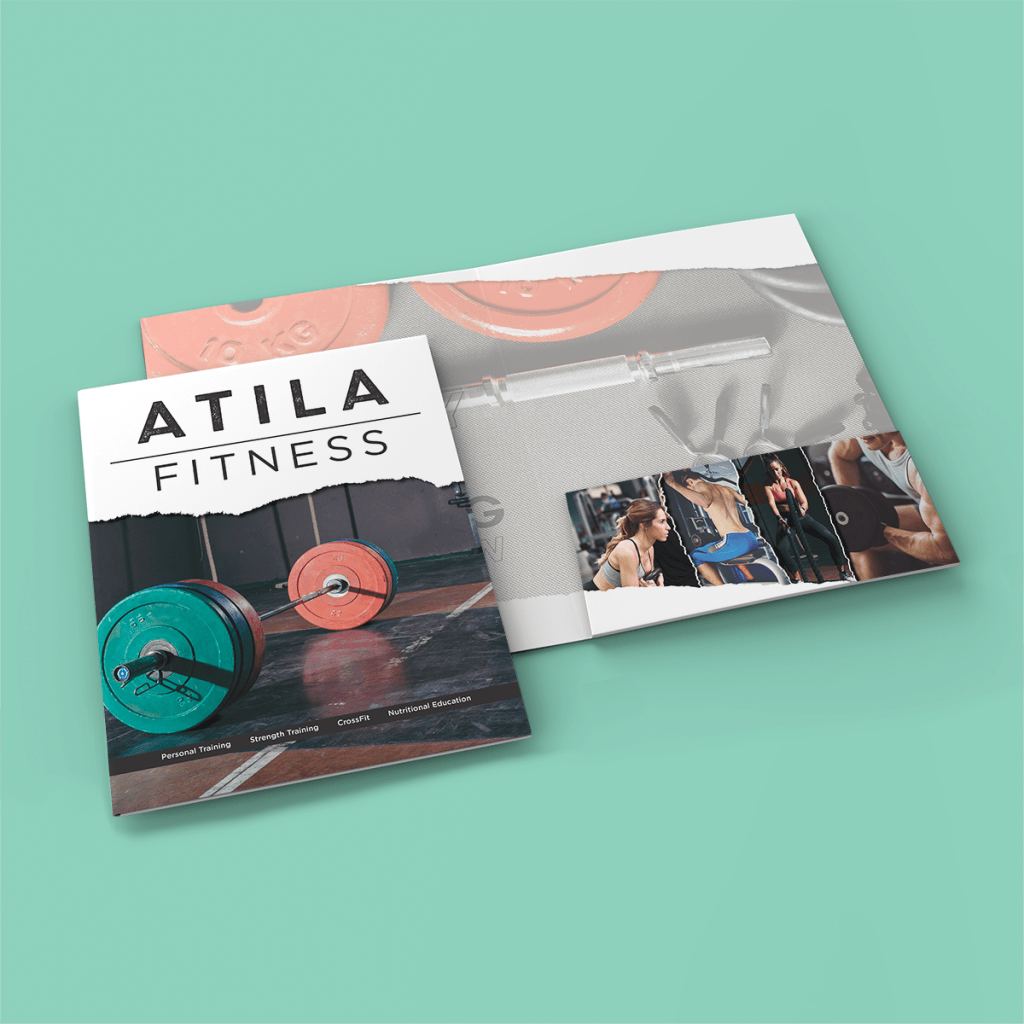 Complete brand identity development and print collateral system for Atila Fitness, a local gym offering personal training, strength training, CrossFit, and nutritional education services.